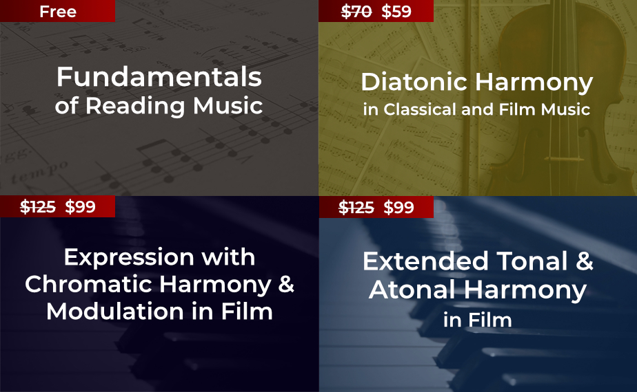 Learn harmony that goes beyond the tonal tradition. Start with deriving chords and melodies from non-diatonic scales like the whole tone and Phrygian dominant. Then move into common dissonant chords like those built from stacked 2nds, atonal chords with semitone dissonances, and polychords that include atonal chords. Finally, learn how to write 12-tone rows with musical character and explore a range of modernist techniques like composing with clusters, extreme registers, and writing aleatoric music to give your music an eerie and foreboding sound.